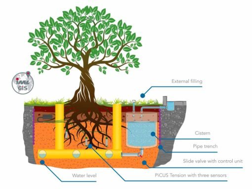 Die PiCUS Tension-Sensoren können direkt bei der Pflanzung junger Bäume am Standort oder nachträglich an Bestandsbäumen, die besonders gefährdet oder erhaltungswürdig sind, eingebaut werden. Die Sensorelemente können, wenn gewünscht, in verschiedenen Tiefen oder auch an verschiedenen Positionen rund um den Baum eingebracht werden. Die zentrale Elektronik kann oberirdisch, zum Beispiel am Pflanzbock eines Jungbaumes, angebracht oder mit eingegraben werden. Die Saugspannungssensoren können mithilfe des Erdbohrers und der IML-Einbauhilfe an die richtige Position gebracht werden.